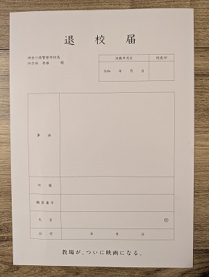 「退校届」と書いてあったので、あぁと思ったら裏面に教場Ⅲと書いてありました。
