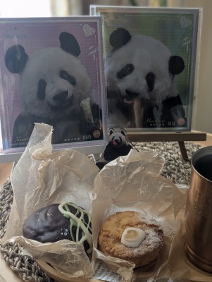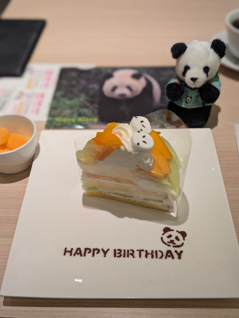 その後はシャンシャンのクリアファイルをもらいにカフェコムサで仲良しパンダのショートケーキを食べました。