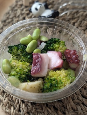 店主はこのサラダが人気だと知る前から好きでよく買っていたんですが、枝まめ増量より、たこの増量が良かったです。
