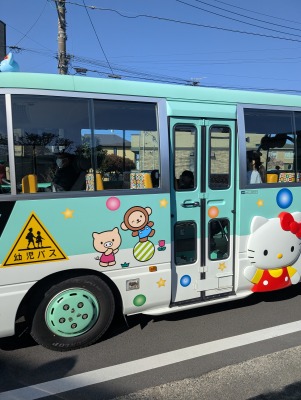 うちの前を通る幼稚園バスがキティちゃんなんです。