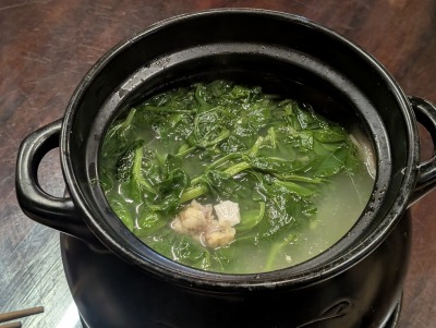 たくさん食事が出てきまして食べきれないんですが、ピンク色の大根の漬物や写真は取り忘れてしまったんですけど、釜で焼いたような蒸しパンが美味しかったです。