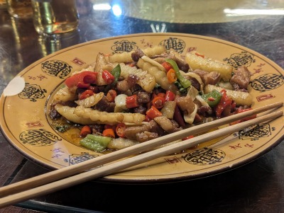 雅安初日の夕食は郷土料理のお店でして、とてお古い建物でした。
