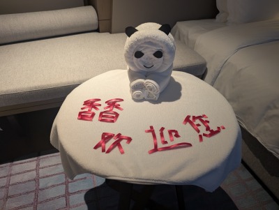ホテルは豪華でタオルで作ったシャンシャンのお顔はちょっと怖かったんですが、ツアーでパネルまで用意していただき、嬉しかったです。