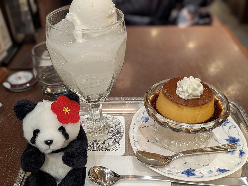 松坂屋上野店さんにあるパンダグッズを扱っているお店も出店していまして、おでかけシャンシャンマスコット、通称おでシャンの梅バージョンを買いまして、一緒にレトロ喫茶店に行って来ました。