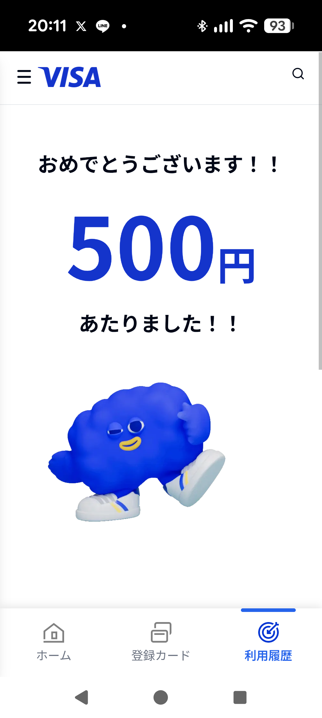 今日はVISA割で500円当たりました!