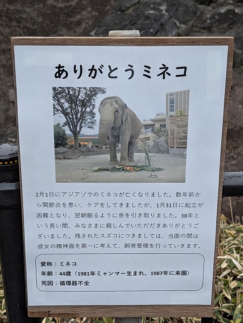 今日は、かみね動物園のアジアゾウ ミネコの献花に行って来ました。