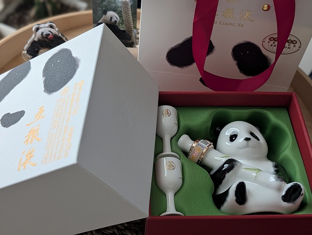 五糧液という中国四川省で有名な焼酎がパンダのボトルに入ったものが売っていまして、お高いんですが買っちゃいました。