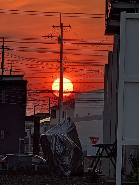 今日は会社の帰りに大きな夕日が見えたので写真を撮ってみました。
