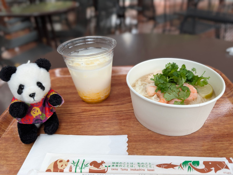 お昼に鶏だしスープの冷たいフォーとマンゴーラッシーを食べてからもう一度行くと起きてました。