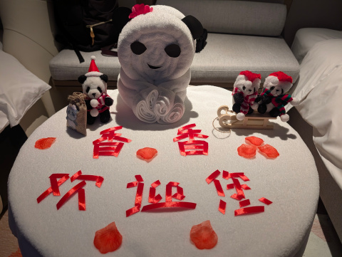 ホテルには新年のシャンシャンのパネルが飾られ、お部屋はパンダルーム、テンション上がりますね。