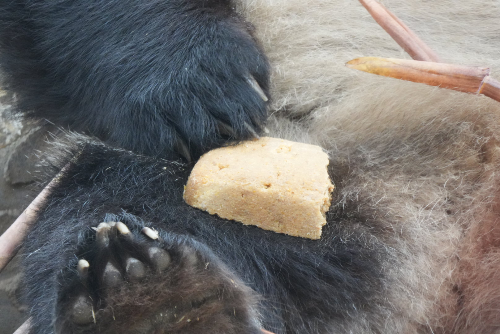 すぐに食べるのではなく、今度は威嚇するような行動に出ましたが、その後は落ち着いて持って行った竹の子を食べていました。