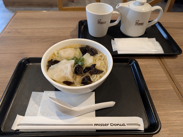 最後はミスドで台湾風もちもち水餃子麺とジャスミンティーをいただきました。