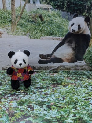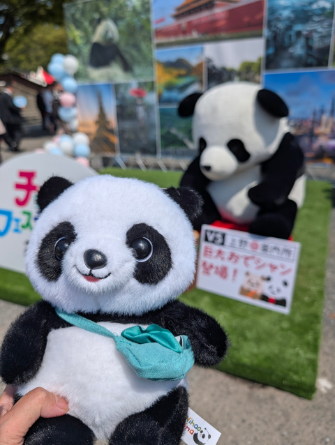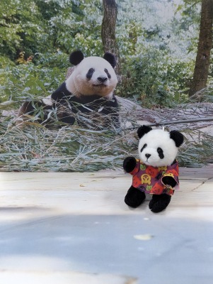 この前、大パンダ展というのに行ってきまして、おでシャンと雅安基地の写真でぬい撮りしました。