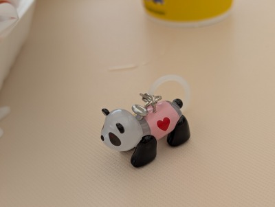 この前、京成上野駅のガチャガチャ、こちらはガシャポンと言うんですが、浅草の花やしきにあるパンダカーのめじるしアクセサリーを買いました。